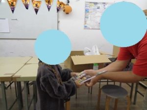 袋いっぱいのお菓子に大喜びで、
