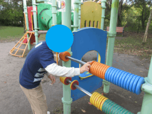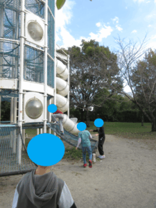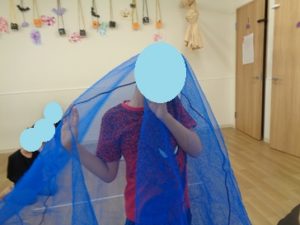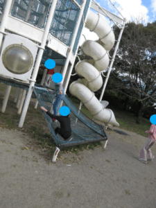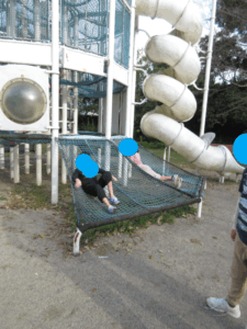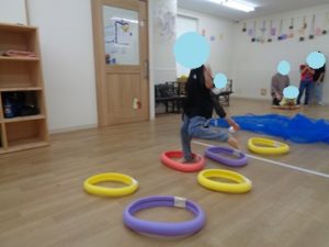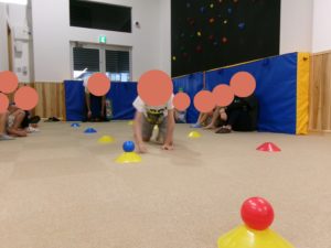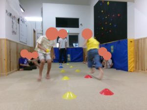 クモの巣くぐり→けんけんぱ→おばけ探しの障害物を