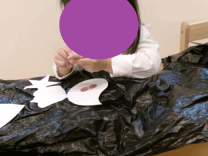 自分たちで作ったハロウィンポシェットと