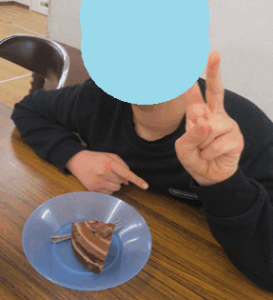 美味しいケーキに思わず笑顔があふれていました