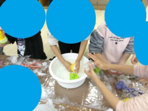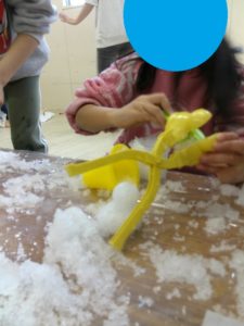 次は真っ白なかき氷雪で遊びます!(^^)!