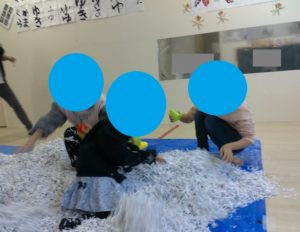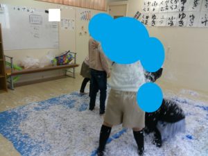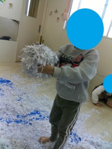 お部屋で雪遊びをしました⛄