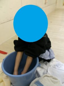 冷えた手はバケツに溜めたあったかいお湯で温め