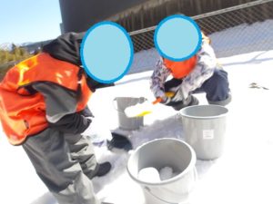 ます。みんなスコップやバケツを使ってたくさん雪
