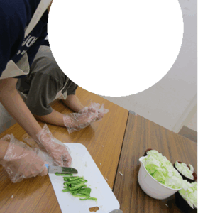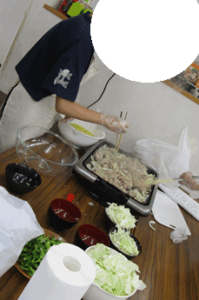 がら、楽しそうに沢山の野菜やお肉を炒める姿も見