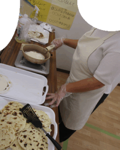 ブリトーの生地作りでは、分量を丁寧に計り、集中