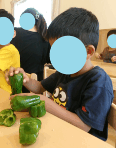 包丁は慎重に。それぞれの野菜の大きさを意識して、